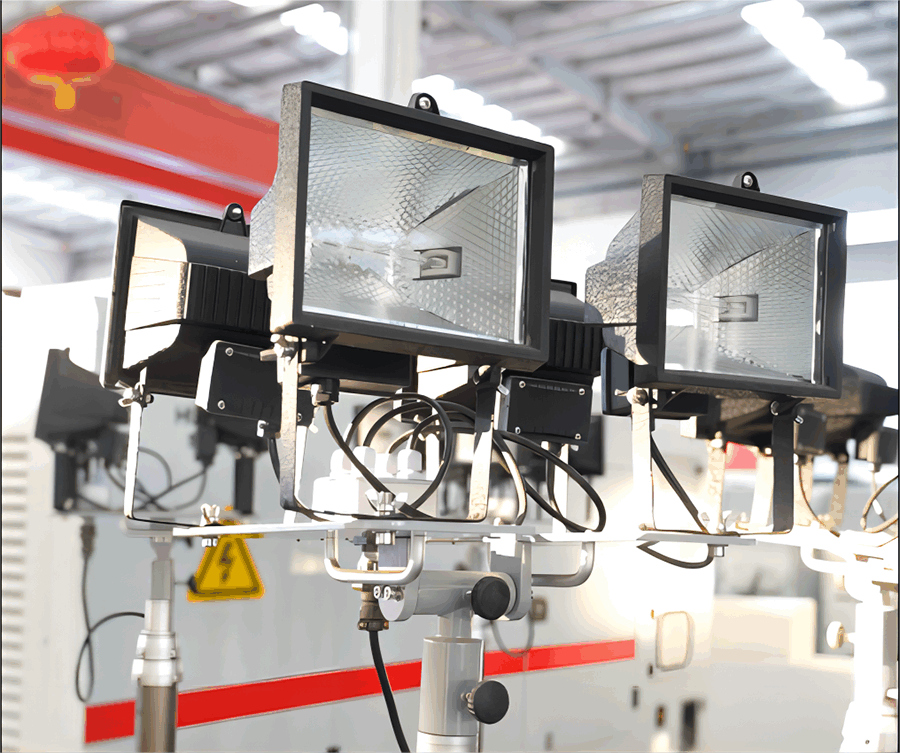 華全電力移動照明燈塔采用高效節能燈頭,照明燈可以根據客戶需求定制。我們新西蘭的客戶,就用了4盞1000W金屬鹵化物燈,提供高亮度照明。