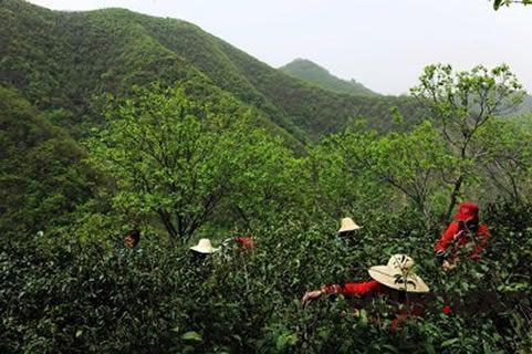唐朝貢茶“瑞草魁”就生長在鴉山陽坡的白陽崗景區里,此處海拔487米,古樹參天、林蒼竹翠、溪水叮咚、云霧繚繞……茶地土質為黑色礫砂土,特茶園溪水別適宜茶生長,茶樹為自然野生,十分 ,可采鮮葉面積8千余畝。