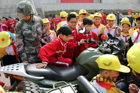 濟南小學生在軍營里現場親身體驗武器裝備。(東方IC版權圖片)