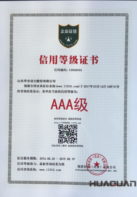 國內的第三方大數據征信平臺——綠盾全國企業征信系統于日前發布了近期獲評誠信AAA級的企業名單,濰坊華全電力有限公司榜上